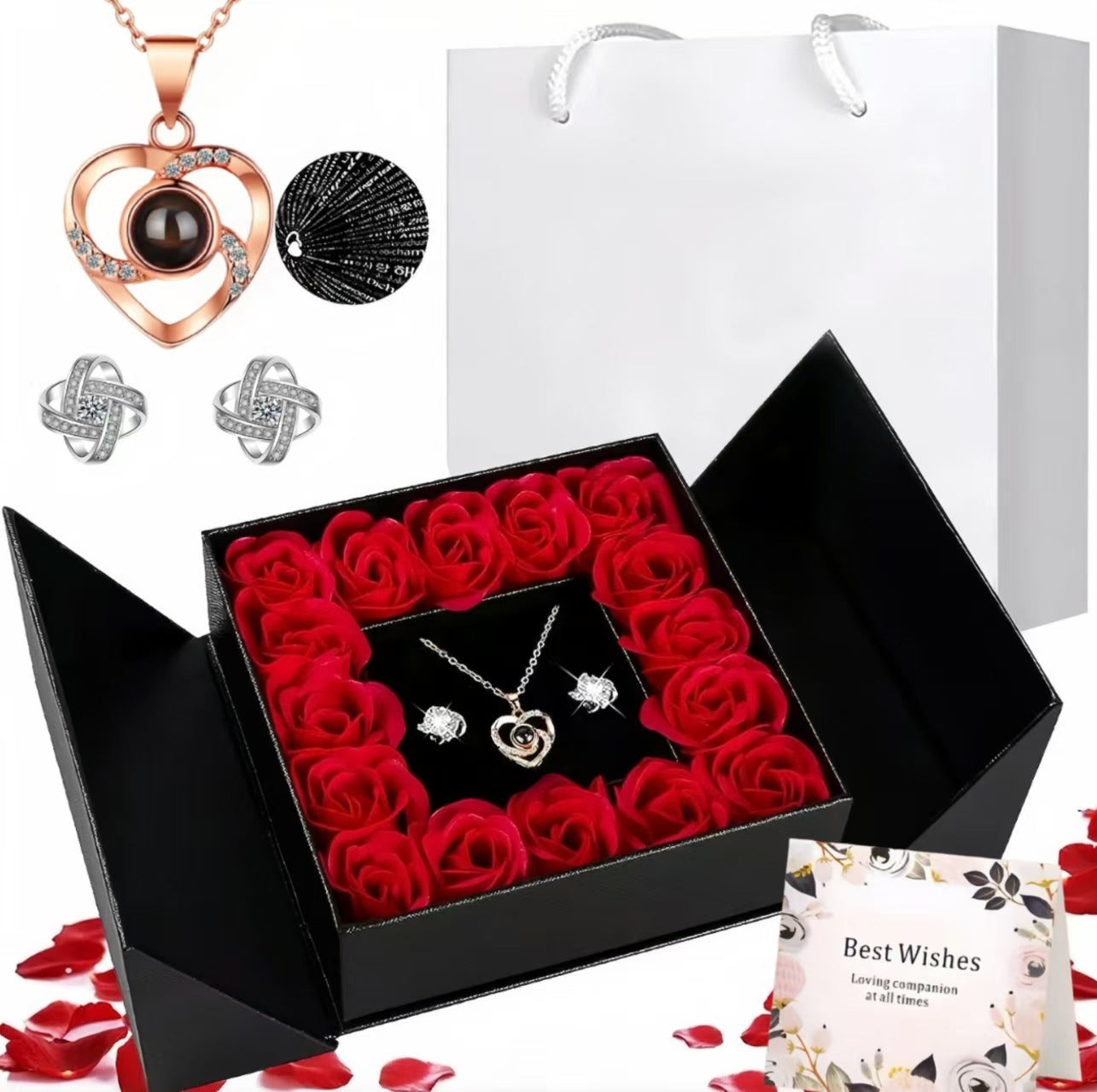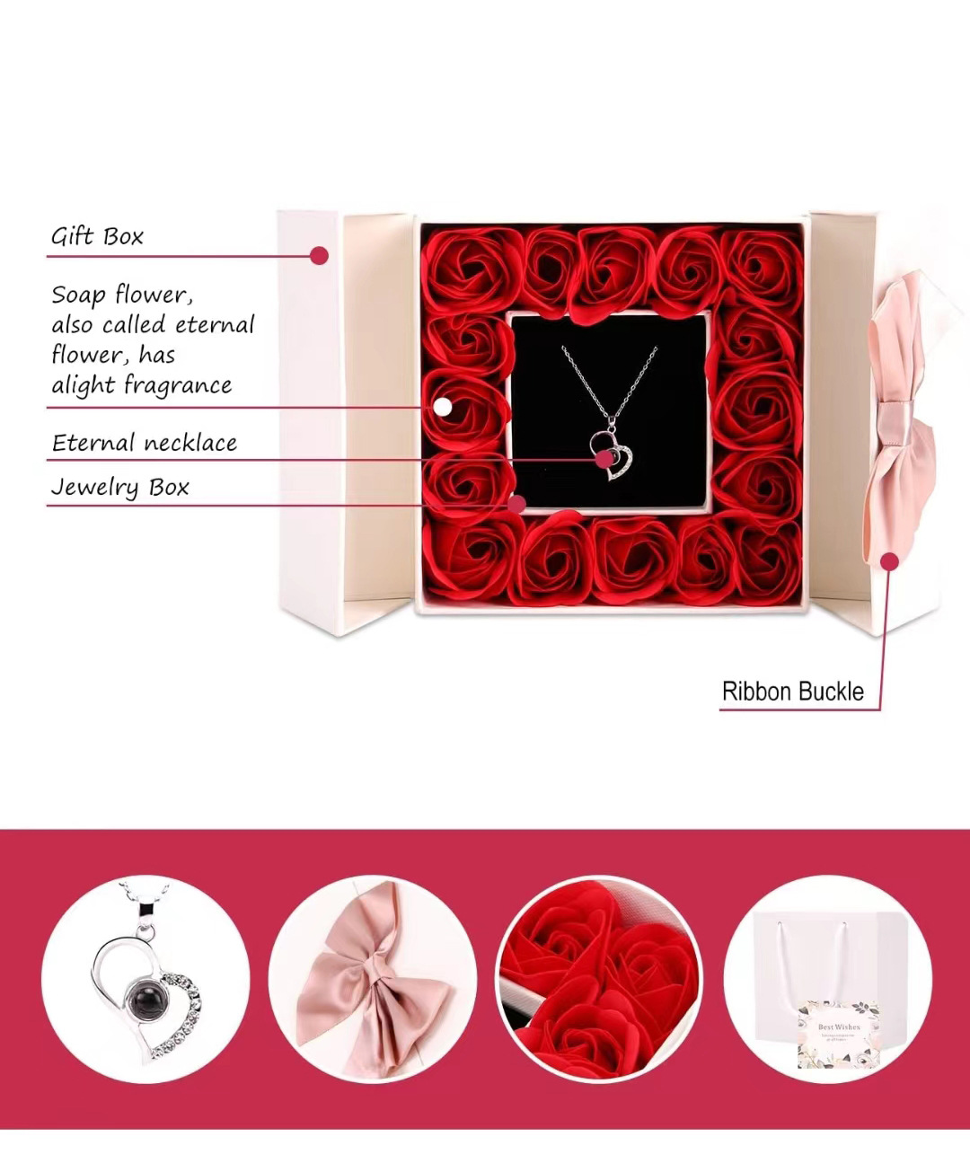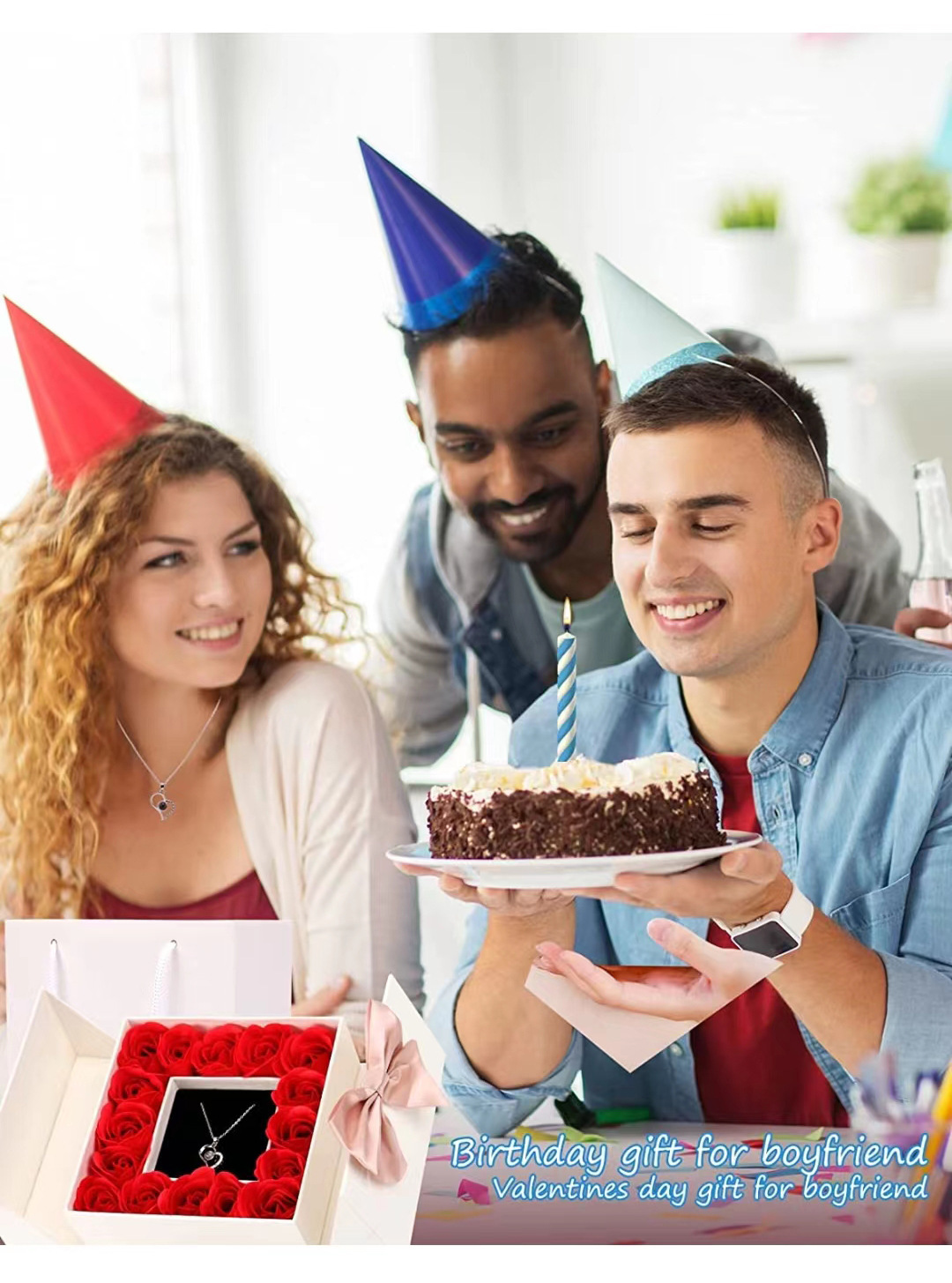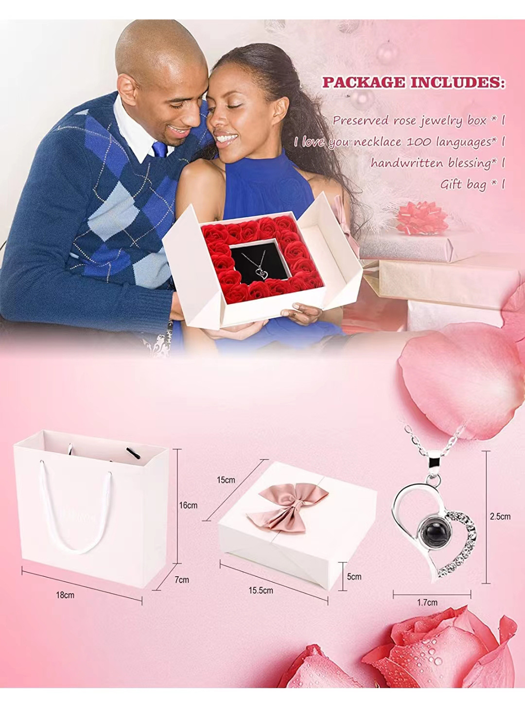 Package Options: Standard pendant, gift boxes with roses (1, 9, or 16 roses), double-door gift sets, or special