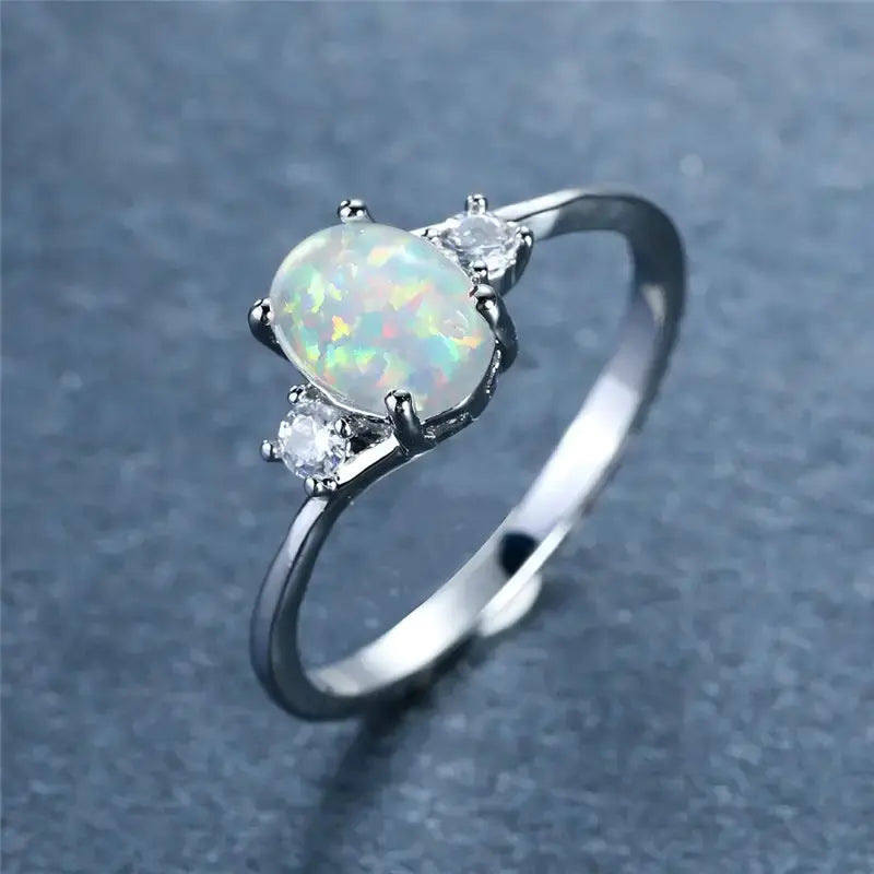 Discover the exquisite beauty of our One Opal Engagement Ring, a perfect blend of elegance and luxury. Crafted from high-quality alloy, this ring features a stunning oval opal that reflects light in a mesmerizing display of colors. It's not just an accessory; it's a statement piece designed to captivate and charm.